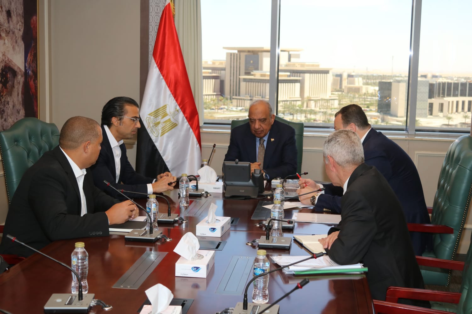 فى إطار المتابعة المستمرة لمجريات تنفيذ مشروعات الطاقة المتجددة، وتطور الأعمال فى ضوء المخطط الزمنى والالتزام بالجداول المحددة لإنهاء المشروعات والربط على الشبكة القومية، التقى الدكتور محمود عصمت وزير الكهرباء والطاقة المتجددة، بالمهندس عمرو علام رئيس مجلس إدارة شركة حسن علام، والوفد المرافق، بحضور المهندس إيهاب إسماعيل رئيس هيئة الطاقة الجديدة والمتجددة، وعدد من قيادات العمل، بمقر الوزارة بالعاصمة الجديدة، لبحث ومتابعة مستجدات التنفيذ ومجريات وتطور الأعمال فى مشروعات الطاقة الشمسية، وطاقة الرياح، التى يقوم على تنفيذها تحالف "حسن علام/ إنفينيتي" فى مناطق بنبان والمنيا والغردقة بقدرة إجمالية 2500 ميجاوات، وكذلك مشروعات بطاريات تخزين الطاقة المتصلة سعة 720 ميجاوات ساعة.