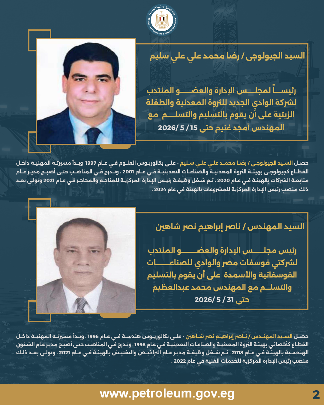 وزير البترول يصدر حركة تكليفات جديدة تشمل عدداً من رؤساء الشركات