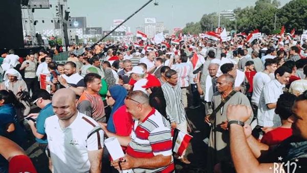 وحرص العاملين على المشاركة فى التظاهرة " حب مصر " أمام المنصة بمدينة نصر تأكيدًا على دعم الرئيس عبد الفتاح السيسى ، وتوجيه رسالة قوية لمن يدعون إلى التخريب، وزعزعة استقرار البلاد، بأن مصر ستظل قوية برئيسها وجيشها وشعبها.